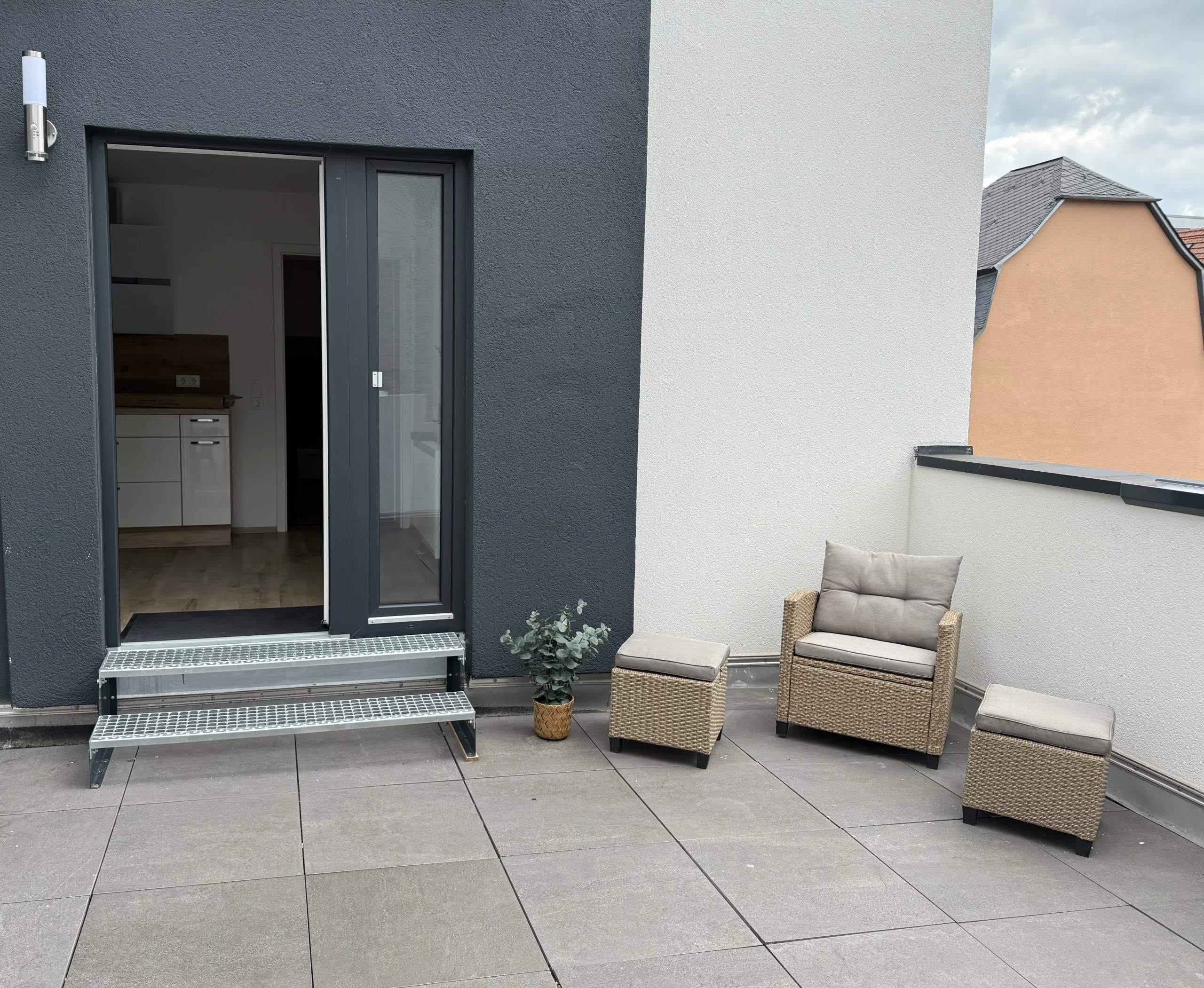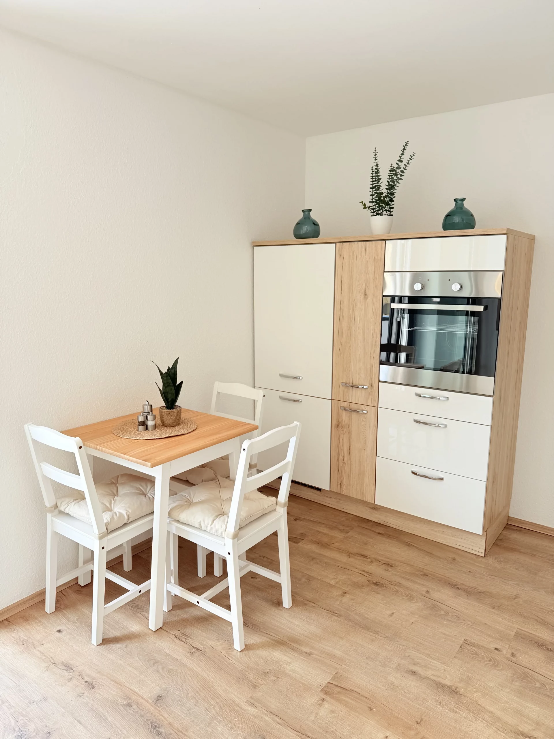 Küche mit Spülmaschine | Küchenutensilien | Kühlschrank | Filterkaffeemaschiene | Stabmixer | Backofen | Herdplatte | Wasserkocher | Esstisch | Terrasse mit Sitzgelegenheiten und Sonnenschirm | Smart TV | kostenfreies WLAN | Französisches Bett | Schlafsofa | Kleiderschrank | Garderobe | Bettwäsche | Handtücher | allergikerfreundlich | Fliesen-/ Holzboden | privater Eingang | Zugang zur Wohnung nur über eine Treppe erreichbar | WC | Dusche | Handtücher | Waschmaschine |Wasch-/ Spülmittel | Haartrockner | Toilettenpapier